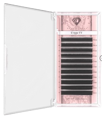 Pestañas YY Tipo U, ideales para lograr un volumen suave y natural. Su diseño en forma de “U” se divide en dos puntas, creando un efecto abanico ligero que aporta densidad sin perder naturalidad.
